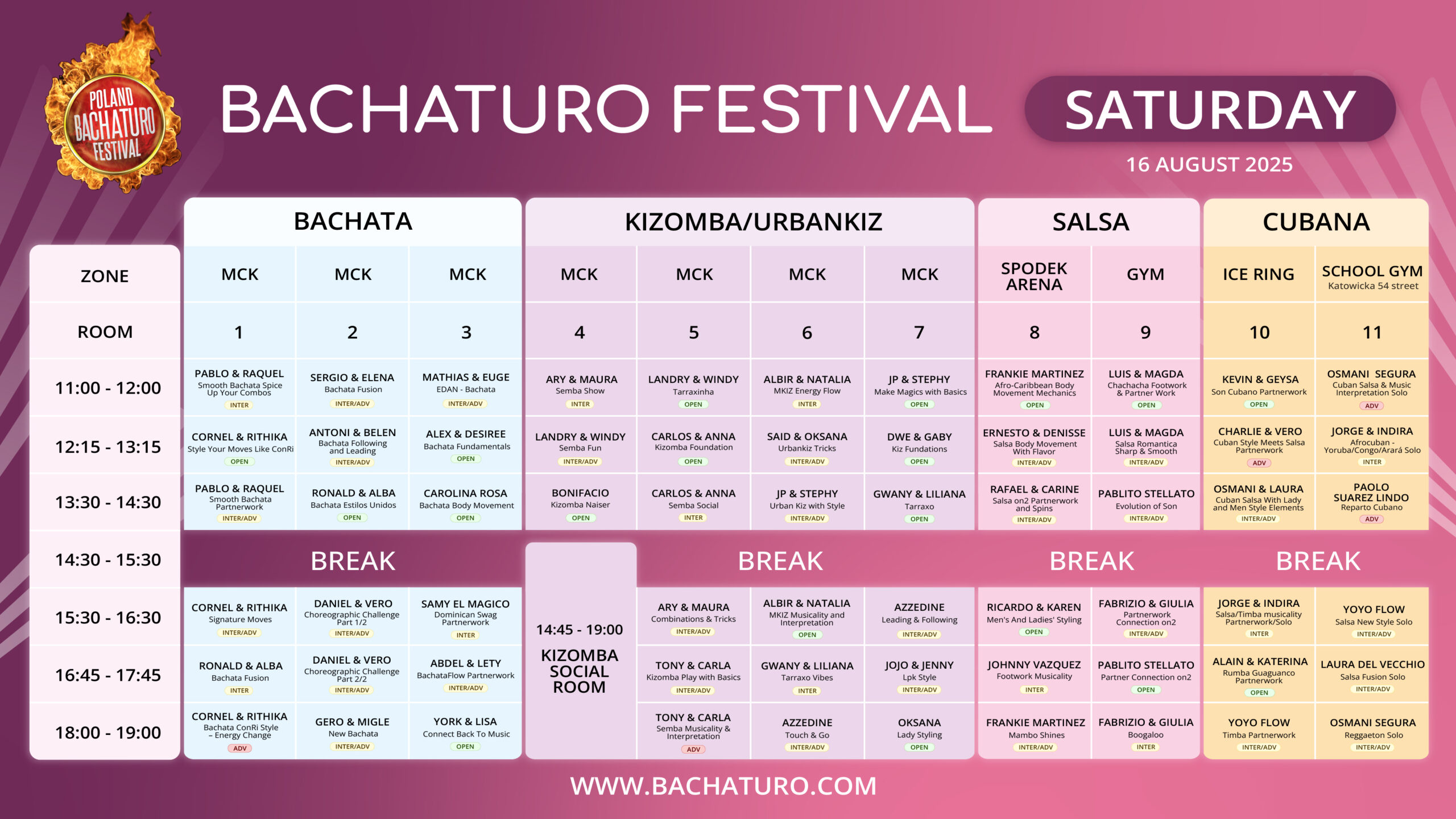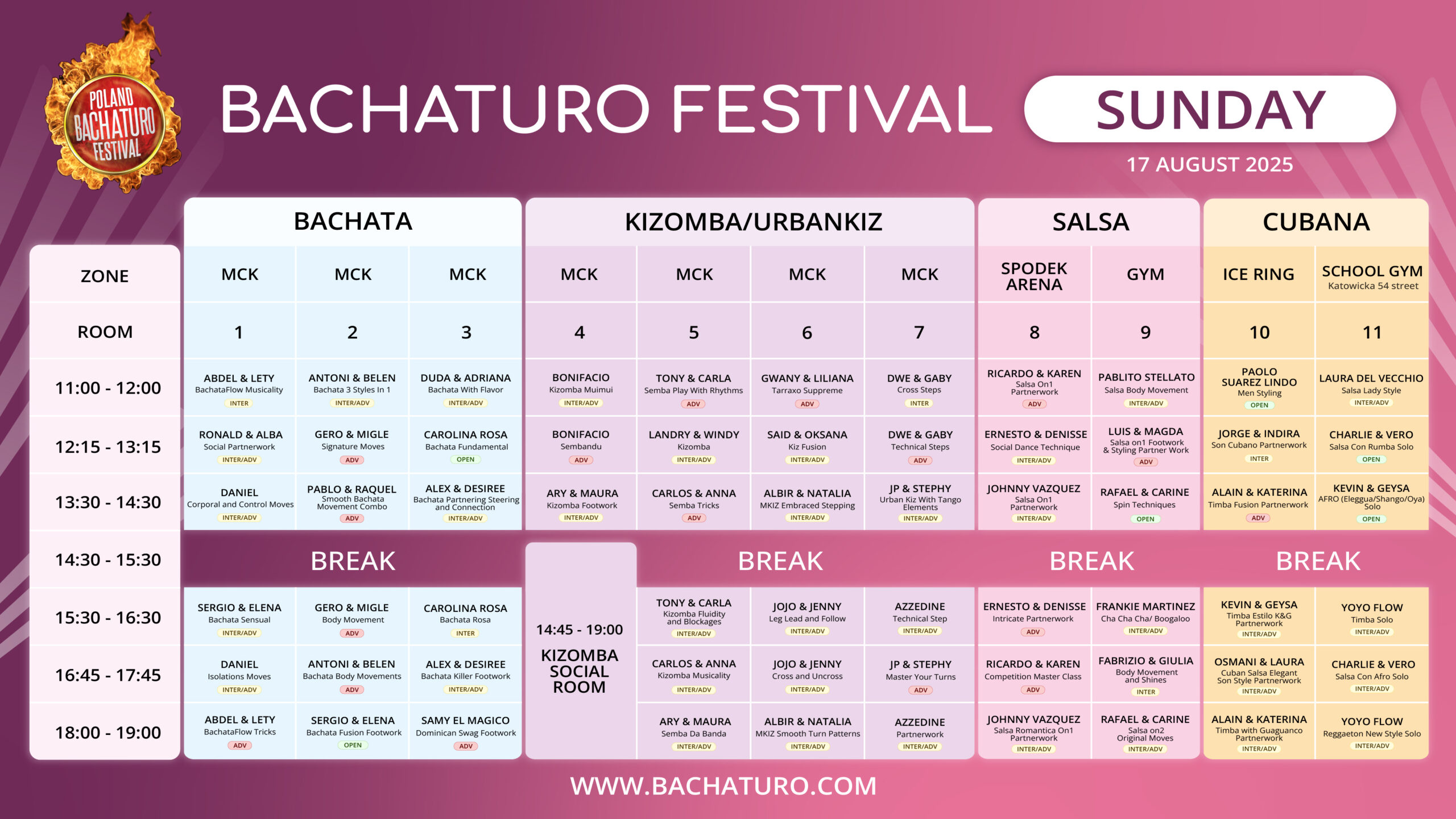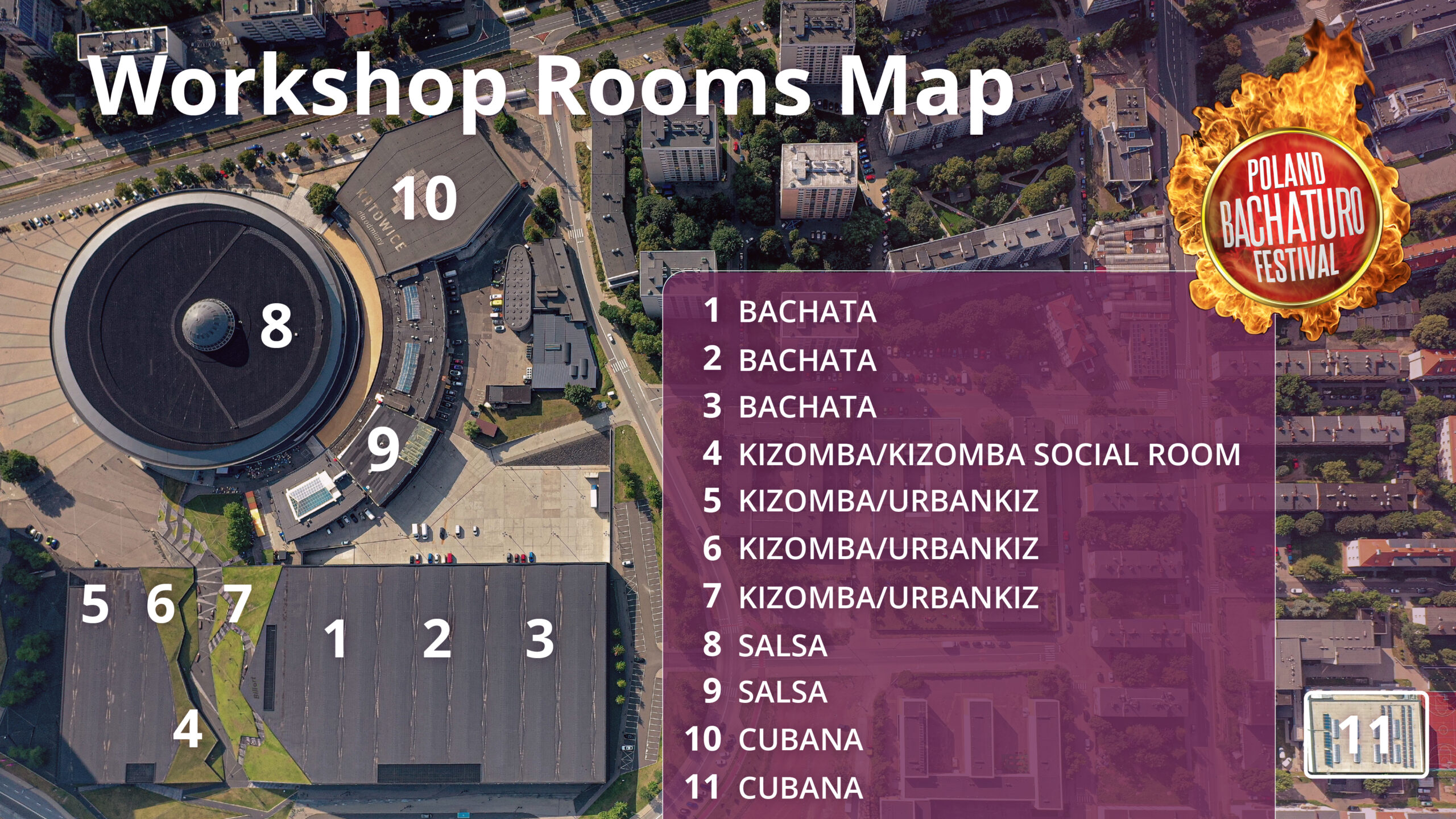 During workshops and parties, food vendors will be available inside the MCK and in the Gastro Fire zone between MCK and Spodek. You can pay by card or cash. The MCK Bistro restaurant will be open daily until 1:00 AM, and snacks will be available afterwards.